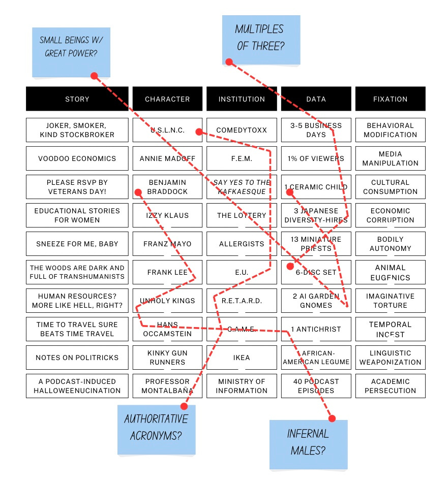 Cork board mounted on office wall using pushpins salvaged from bulletin boards in liminal space between hallways. Red yarn purchased from corporate commissary connects submission data points across temporal and geographical impossibilities.